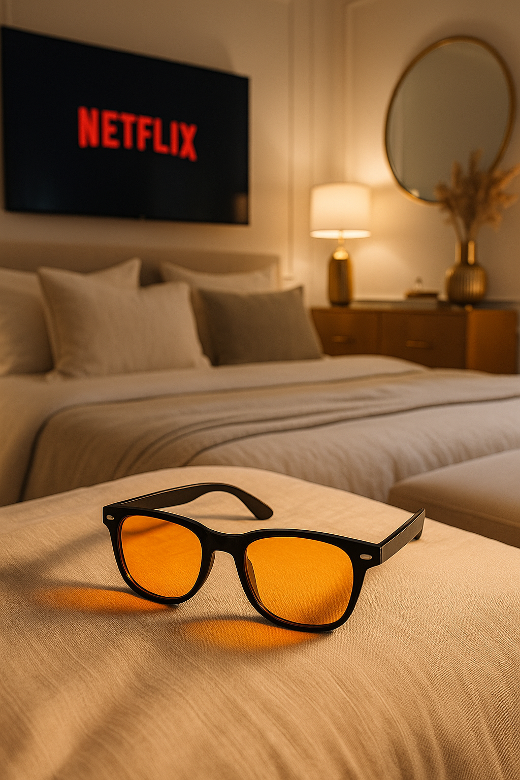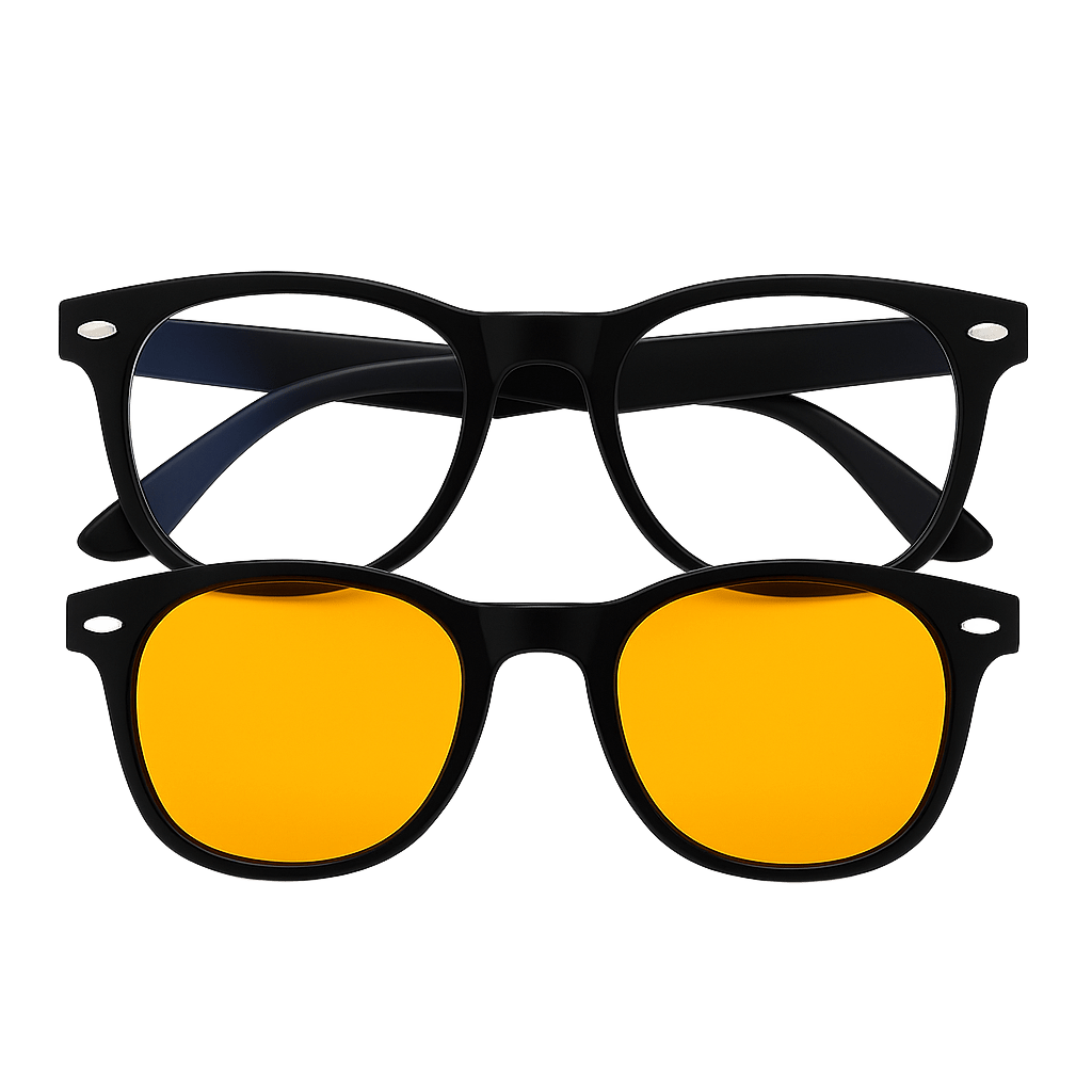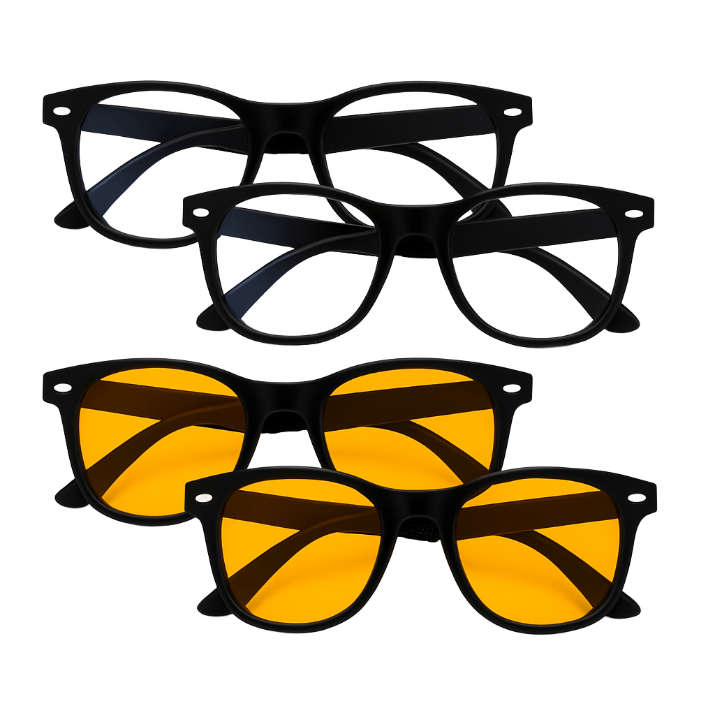 • Gafas naranjas (¡incluidas gratis en tu compra!), ideales por la tarde/noche antes de dormir.